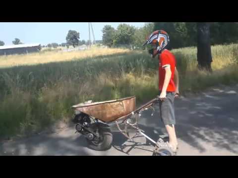 Izmislio je kolica na motorni pogon. Kako vidimo, on pri ovoj vožnji na glavi nosi kacigu. Pogledajte i vi kako ovo funkcioniše: